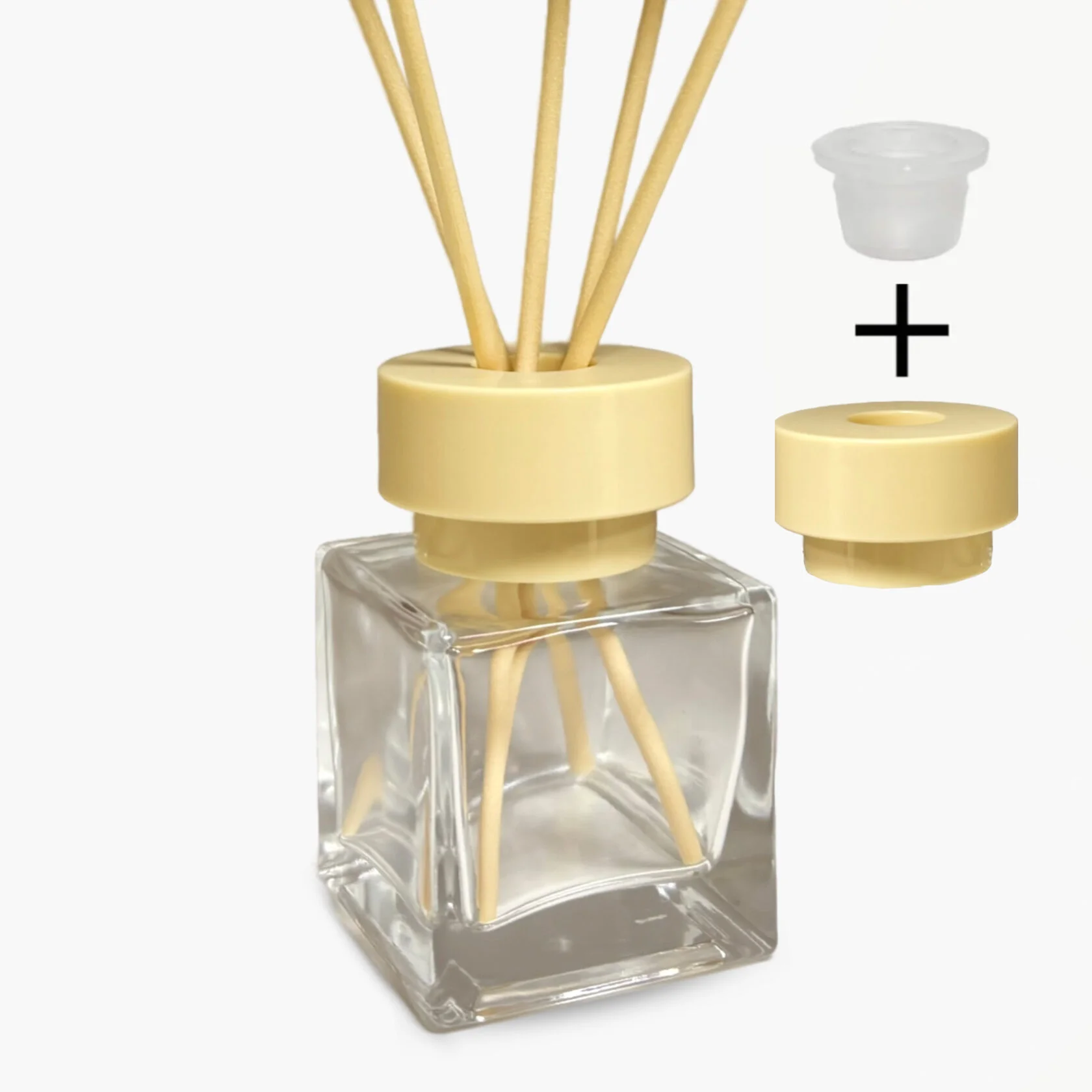 Комплект: Флакон для диффузора 50 мл прозрачный куб с бежевой крышкой Шляпа